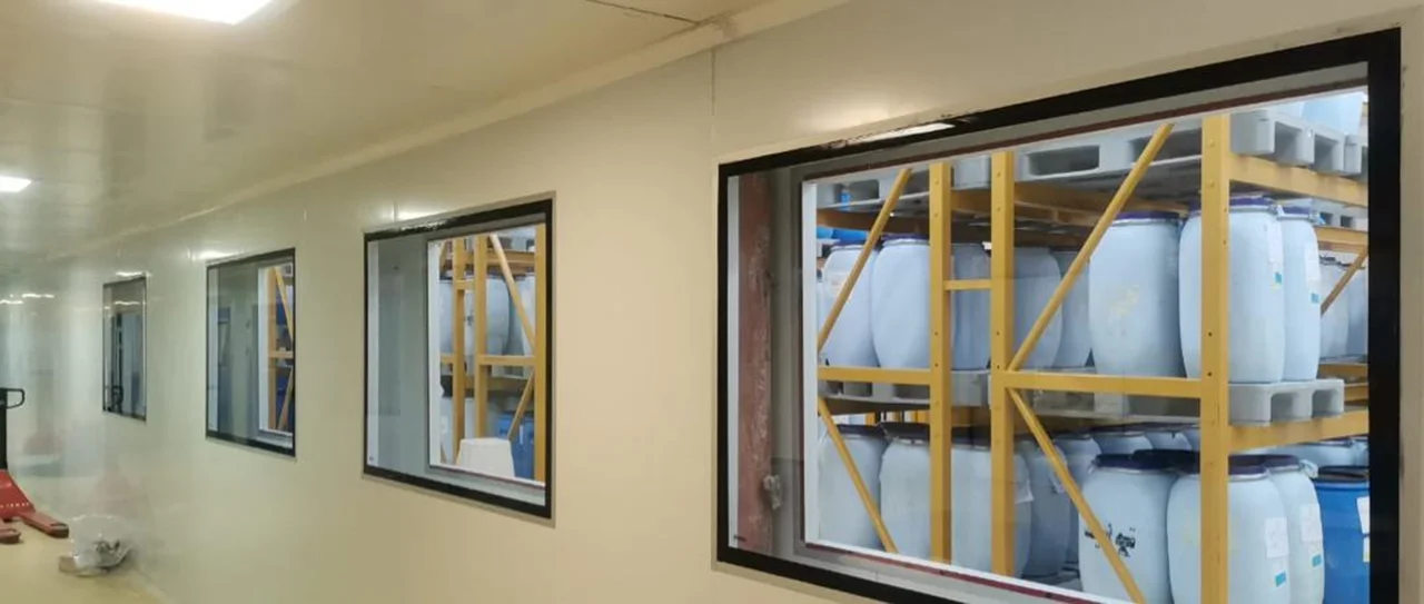 پنجره مخصوص اتاق تمیز ساخته شده فریم از جنس آلومینوم آنادایز سخت کاری شده قوی با شیشه سکوریت،امکان تولید در سایزهاس مختلف بصورت یک تیکه پانلی را دارد